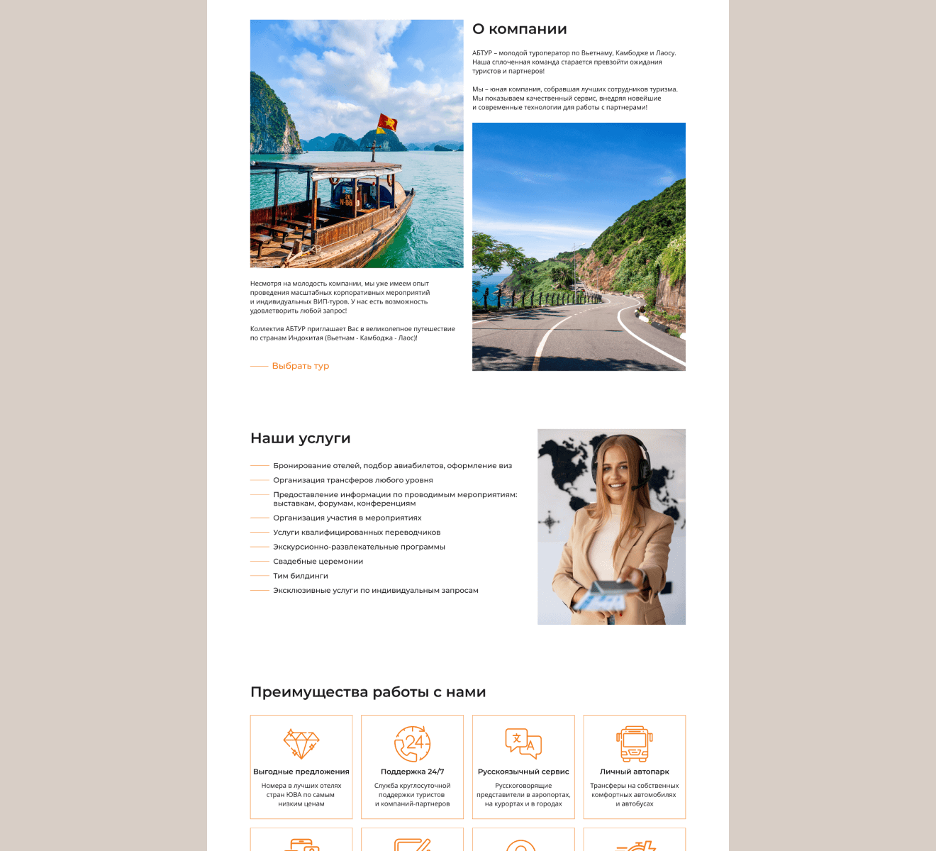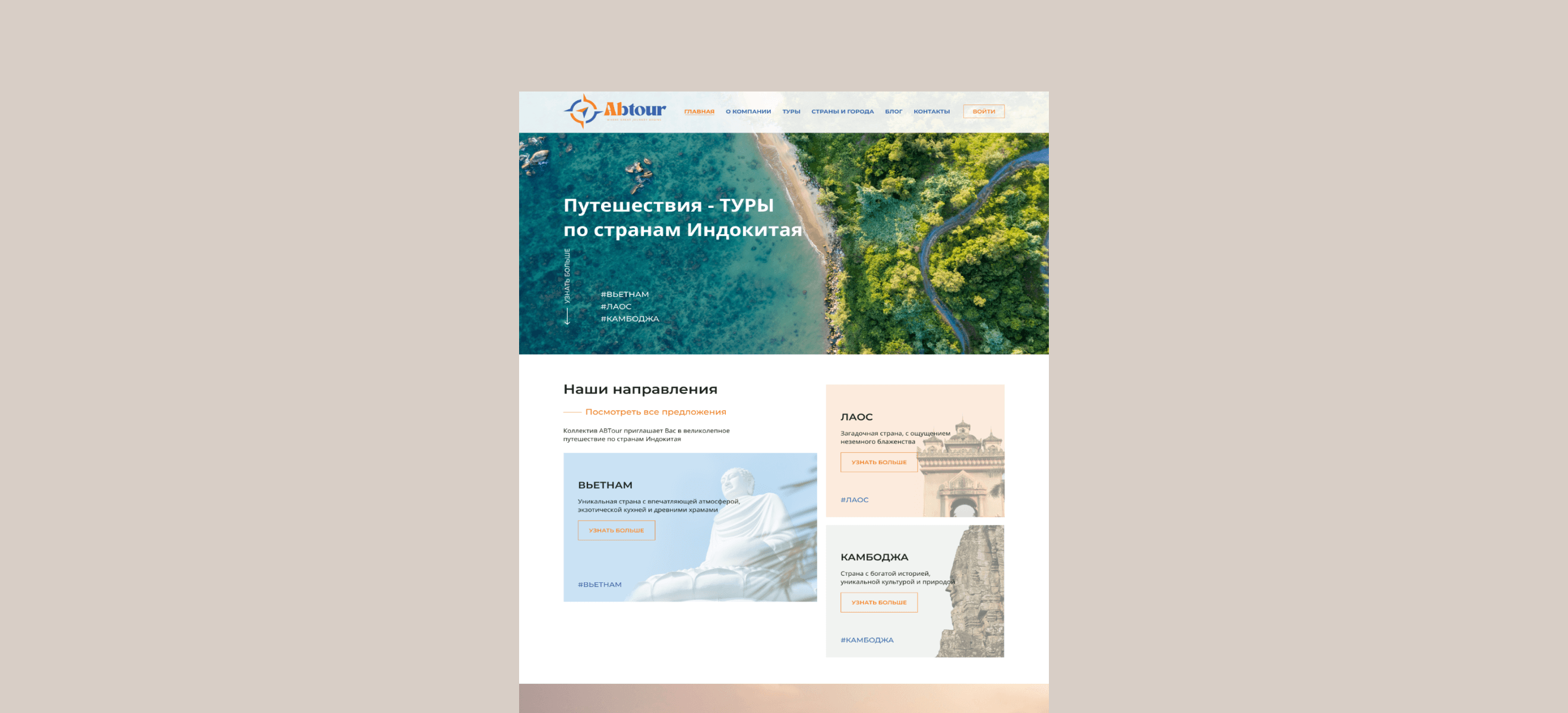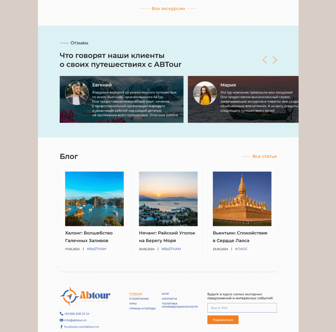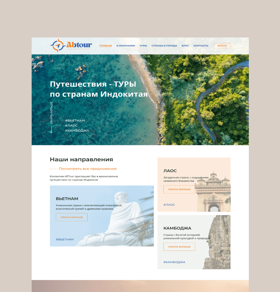 This project was created to improve the user experience, inform visitors about the agency’s services, and encourage engagement through lead generation. The website contains a large amount of information, including descriptions of countries, cities, and tours, and key details about the agency. Each section of the site was designed to match the overall style of the project: