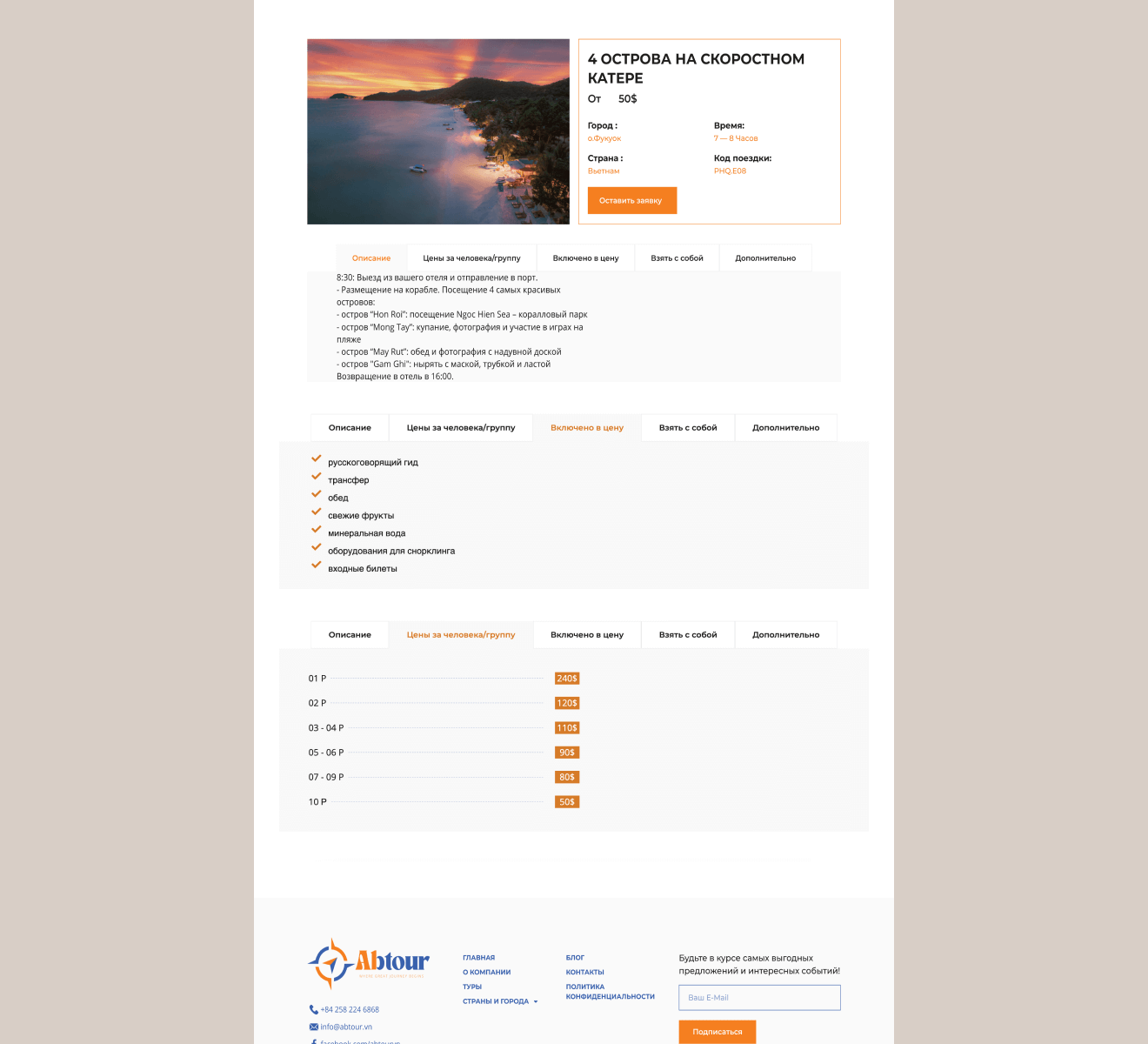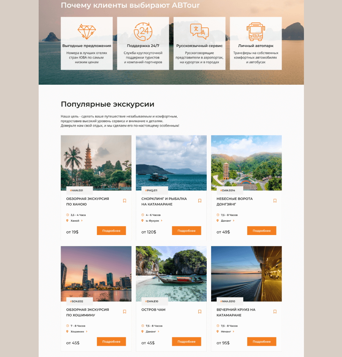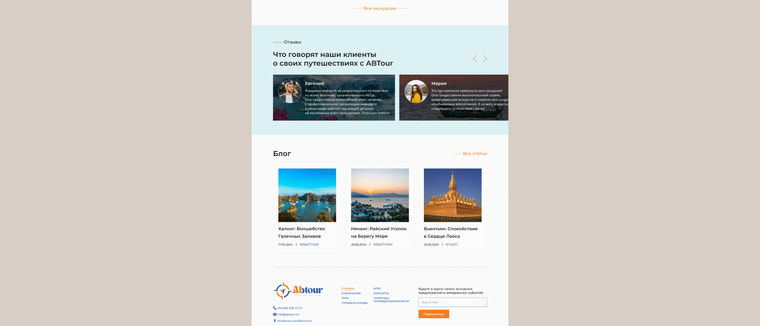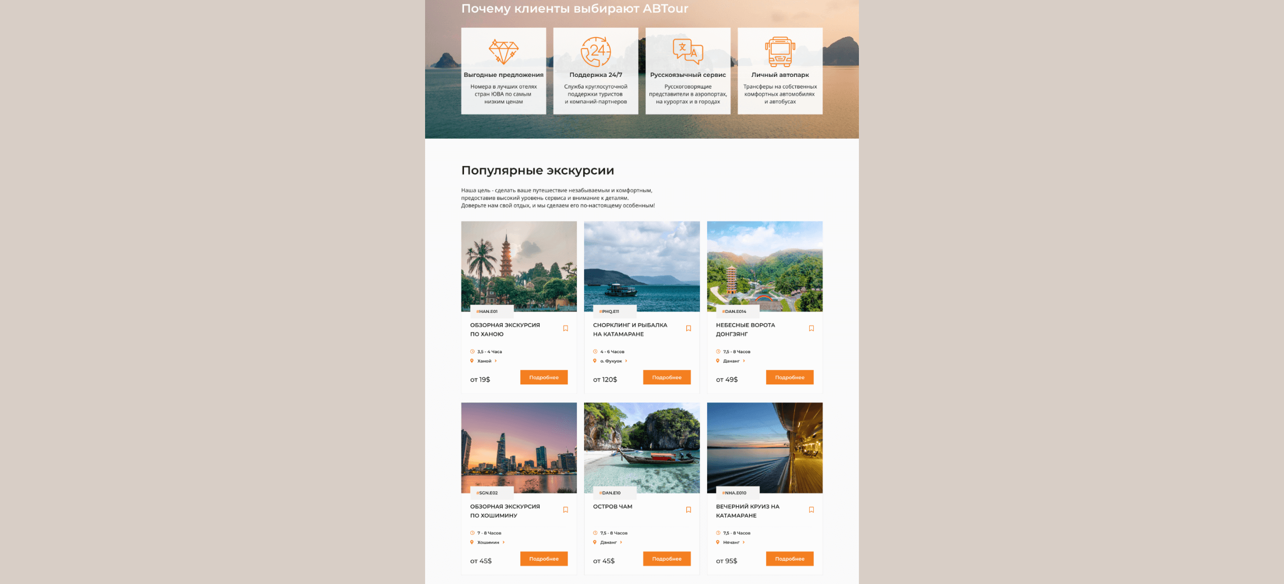 This project was created to improve the user experience, inform visitors about the agency’s services, and encourage engagement through lead generation. The website contains a large amount of information, including descriptions of countries, cities, and tours, and key details about the agency. Each section of the site was designed to match the overall style of the project: