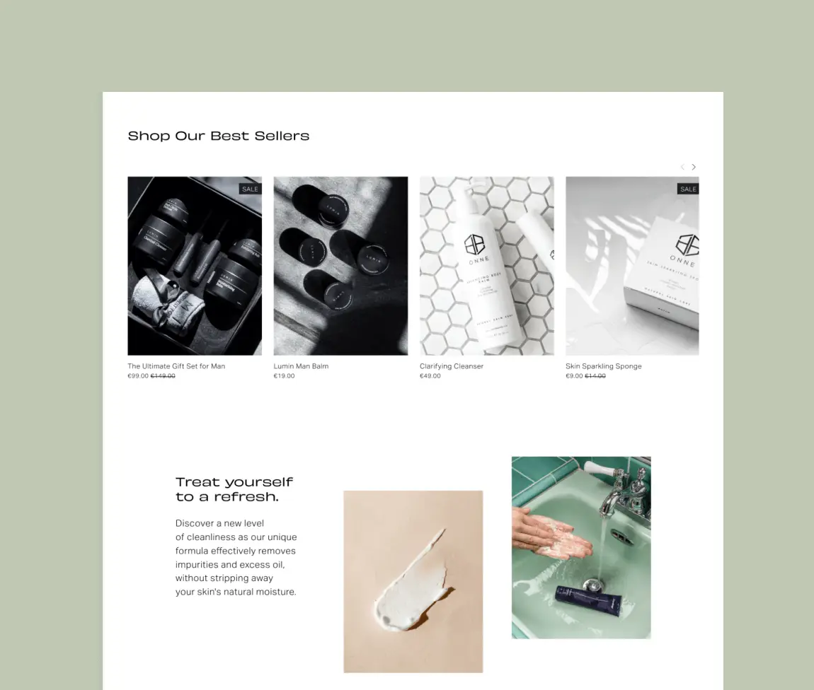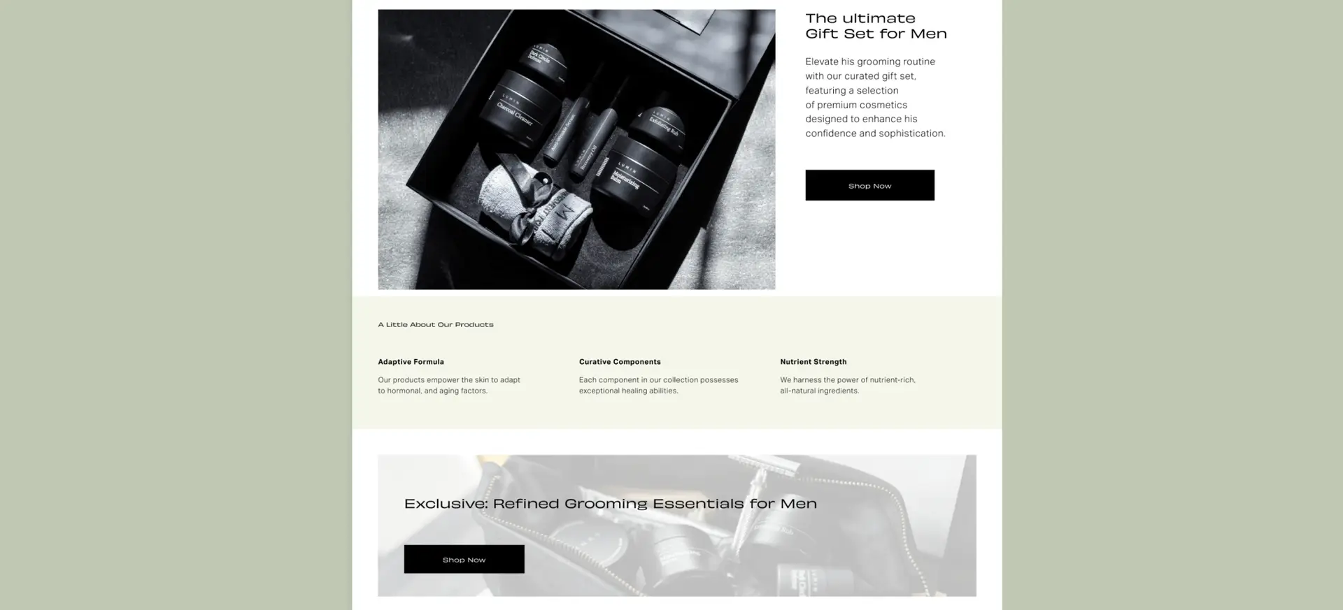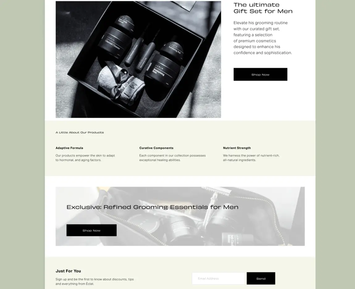Online store for natural cosmetics aimed at both men and women segment, reflecting the high quality of the products while appealing to two different target audiences. A modern and aesthetically pleasing design was created to highlight the brand’s eco-friendly values, with easy navigation for users to switch between product categories for men and women.