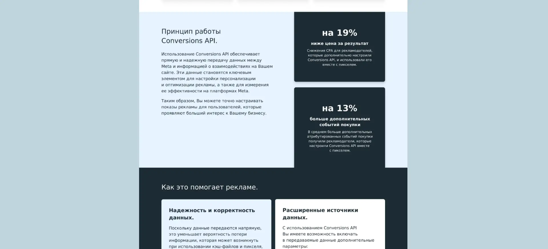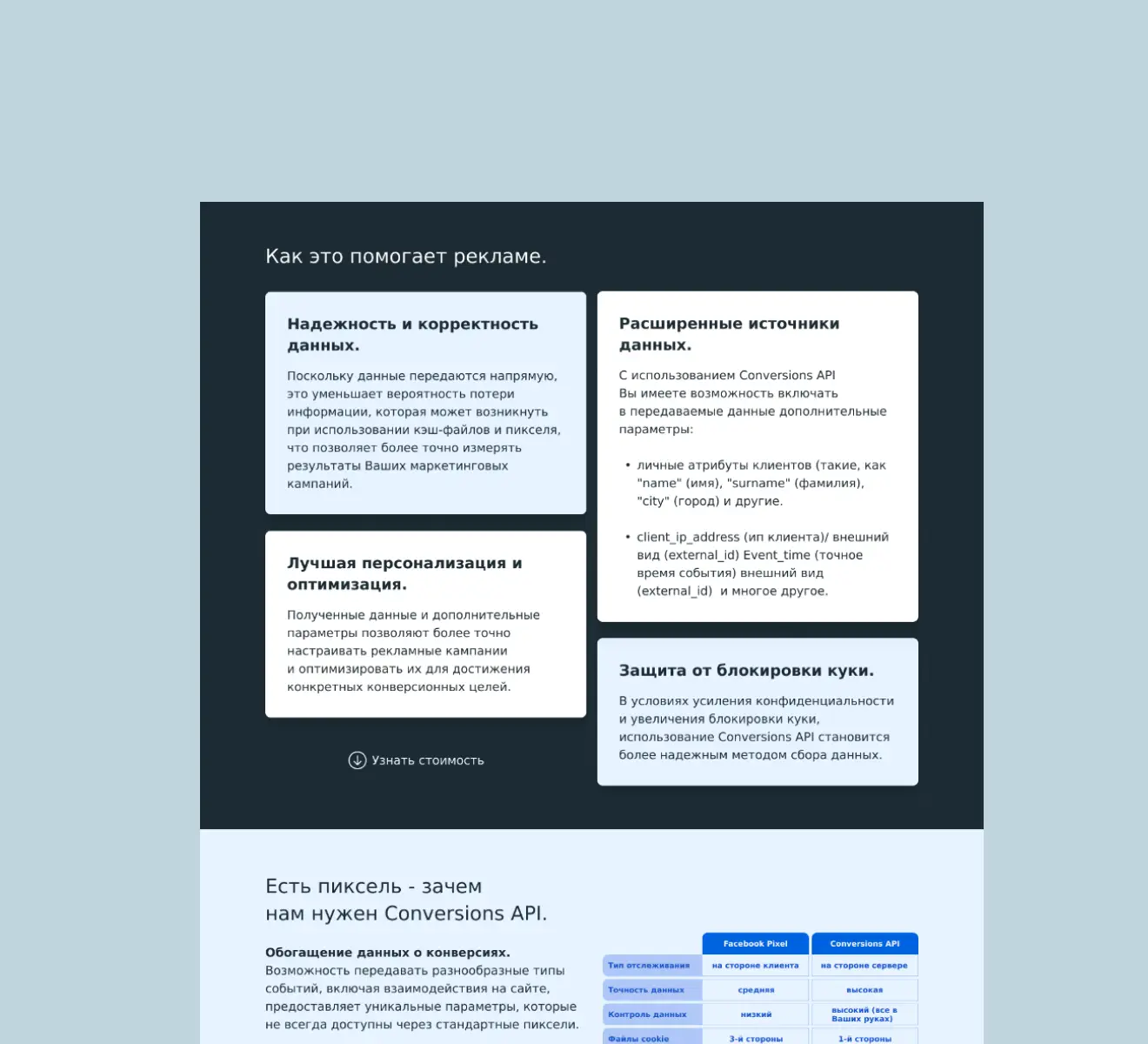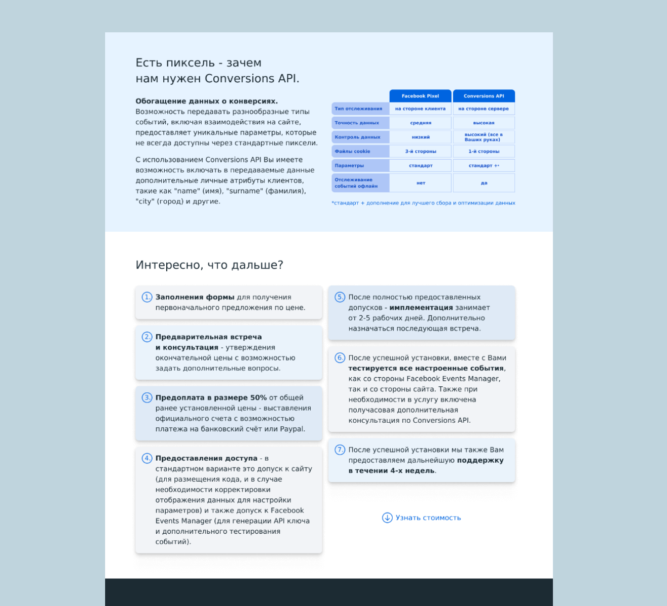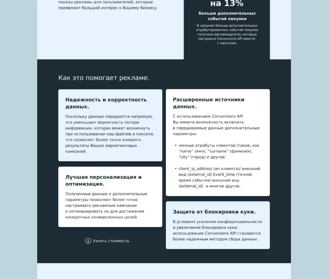The primary focus is on delivering key information about the services in a clear and accessible way, allowing potential customers to quickly understand the value of the offer.