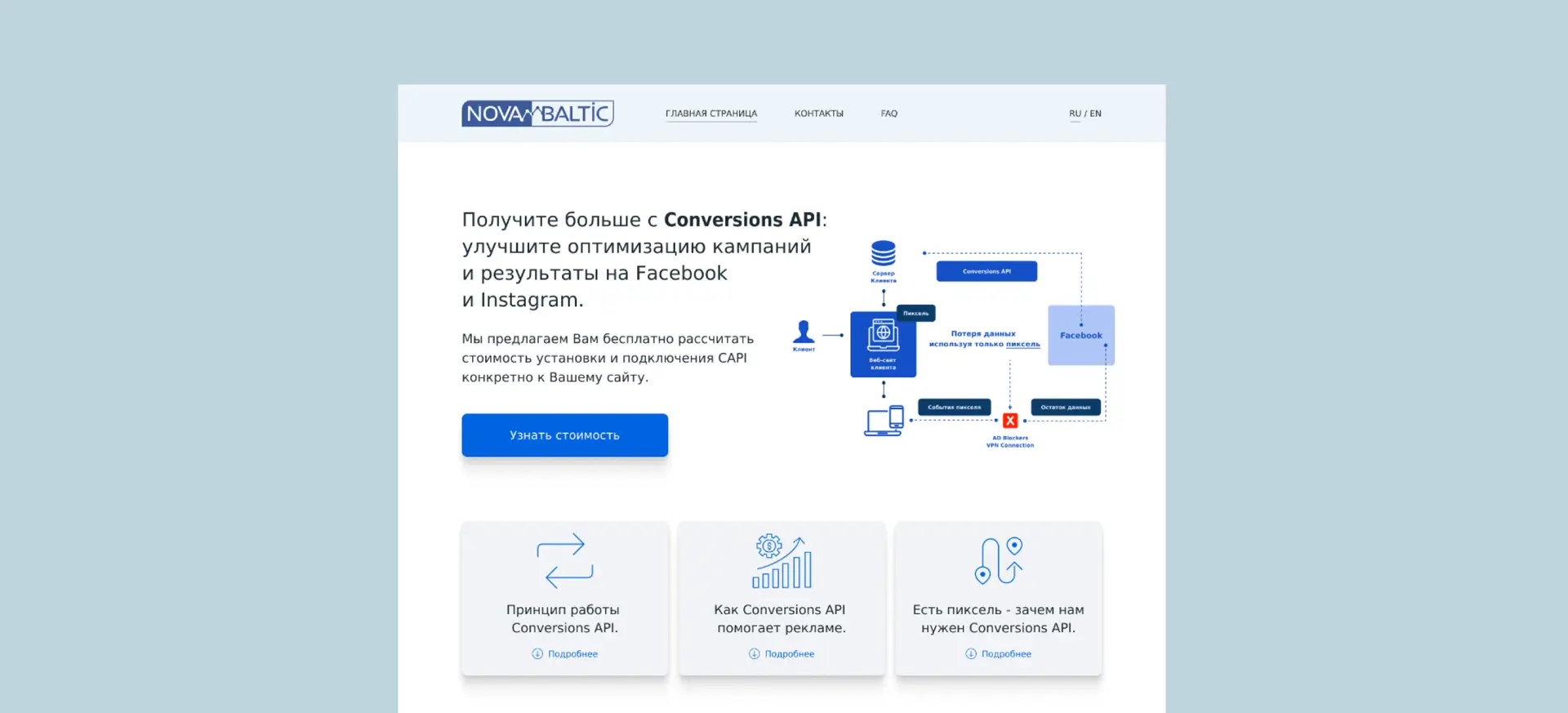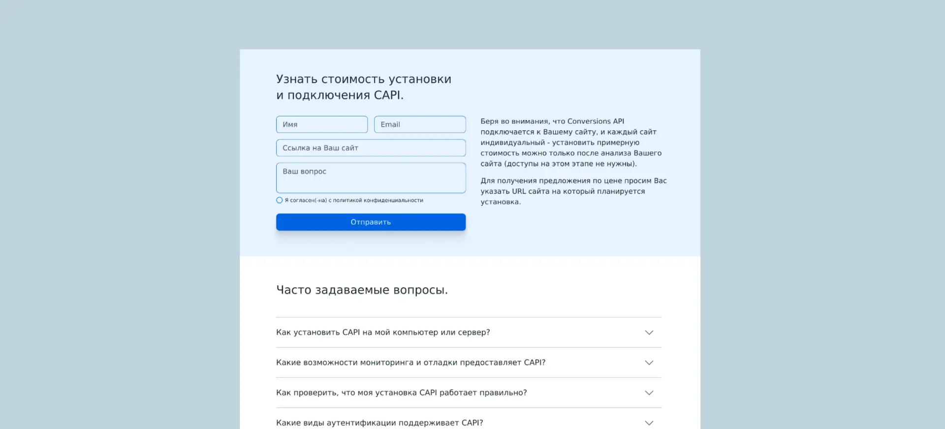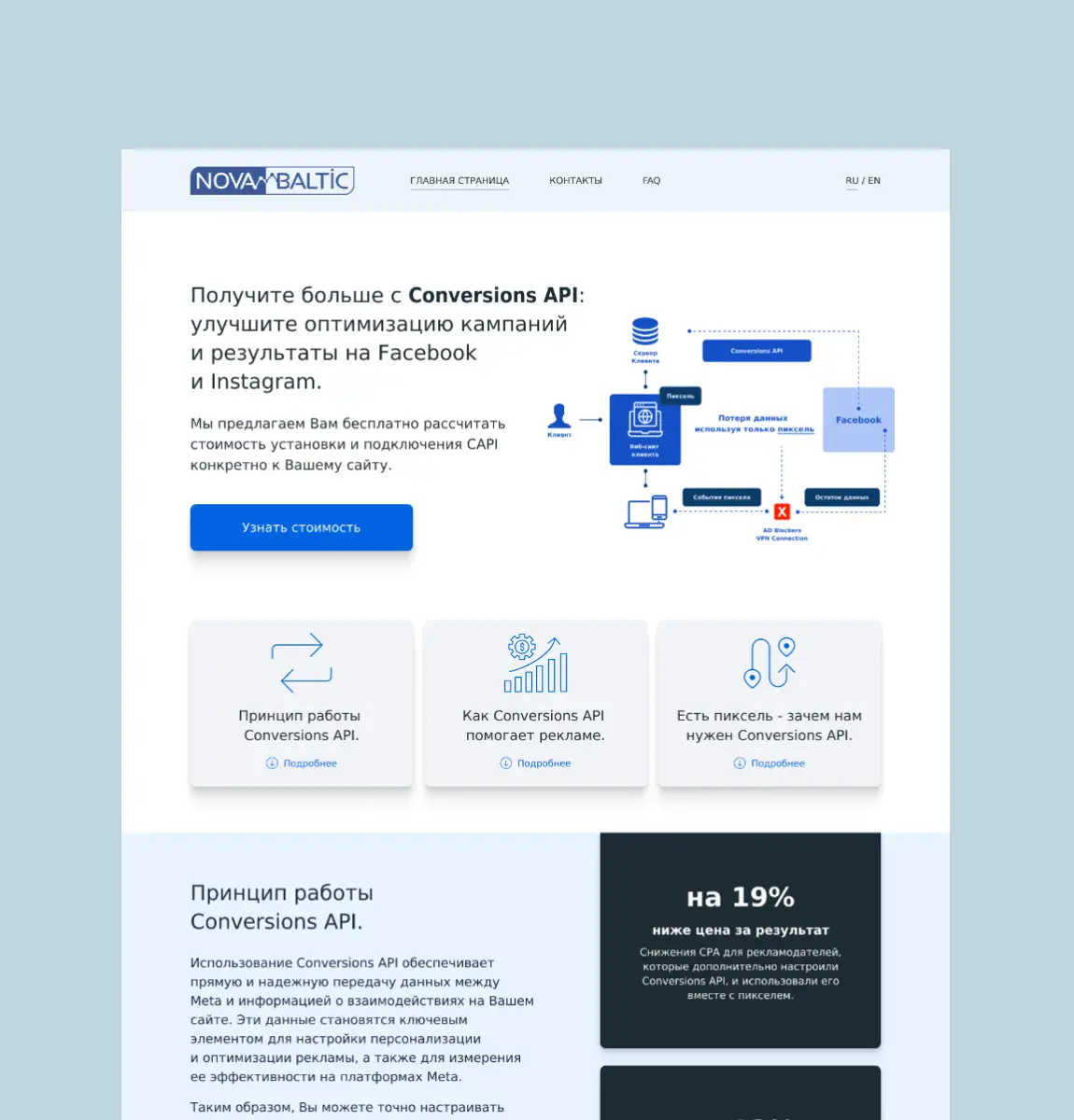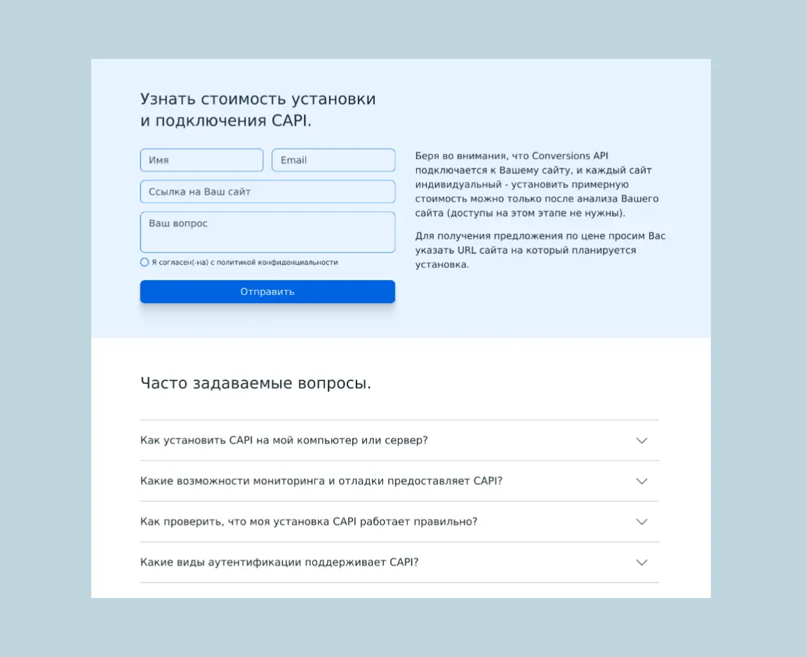 A landing page was developed for the company implementing server tracking solutions services, designed according to their brand style and colors.