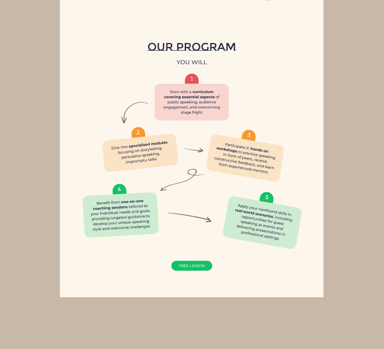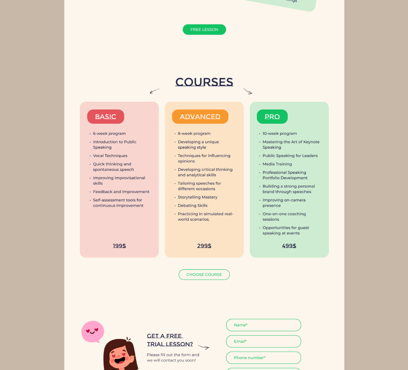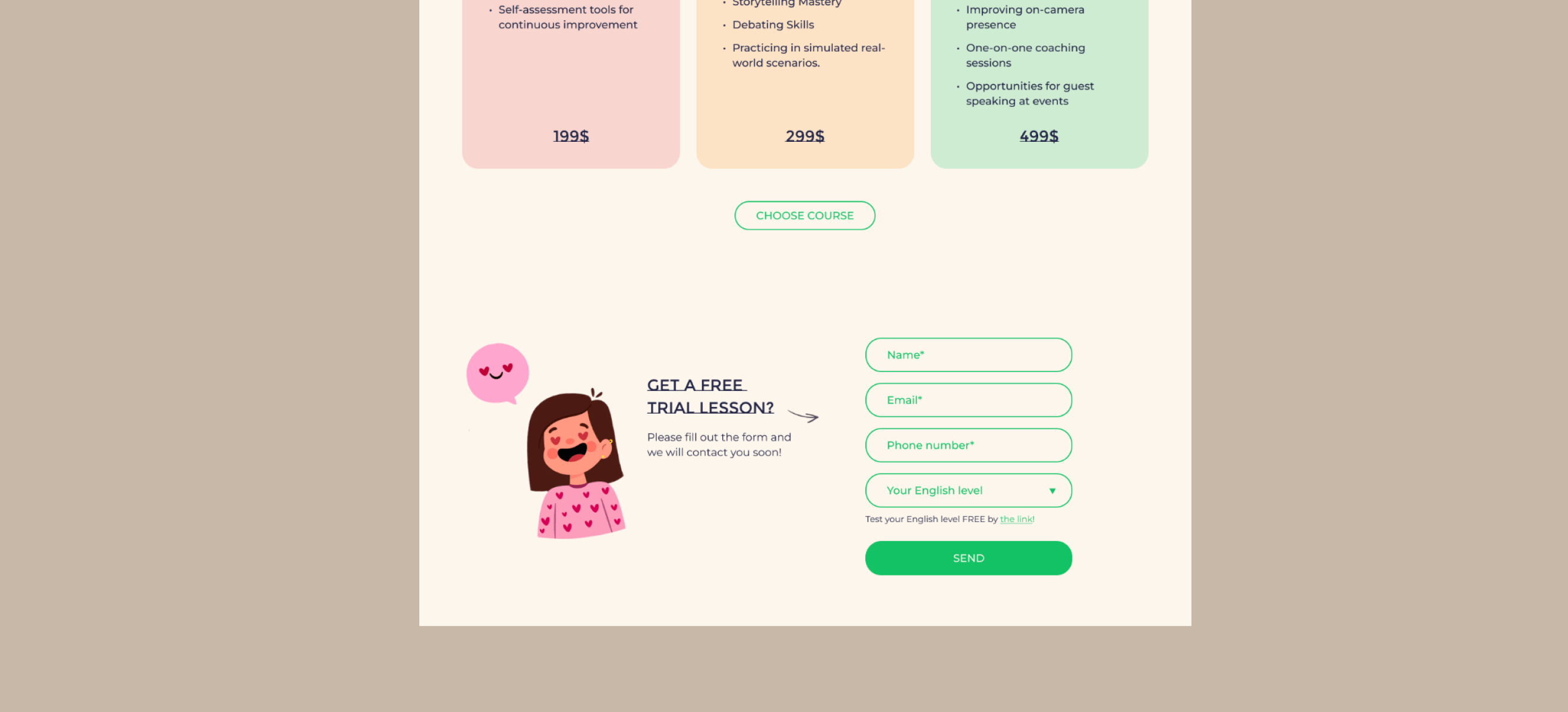 The website was designed for the English Speech Club in Ukraine; the client requested design in bright colors and a playful style, featuring eye-catching elements that attract users’ attention. Design reflects the dynamic atmosphere of the lessons, which take place in a comfortable and game-like format, ensuring convenience and engagement for students.