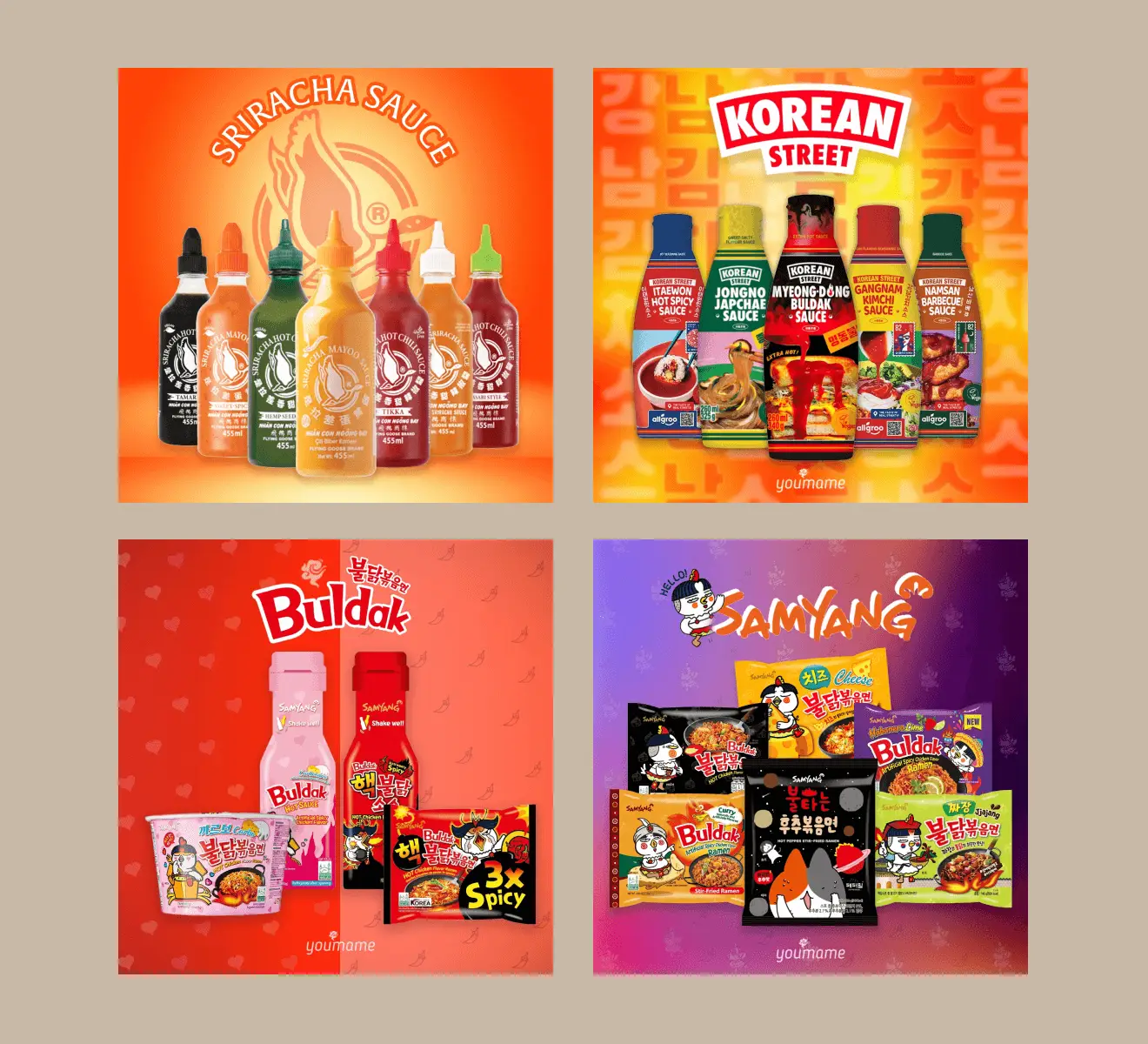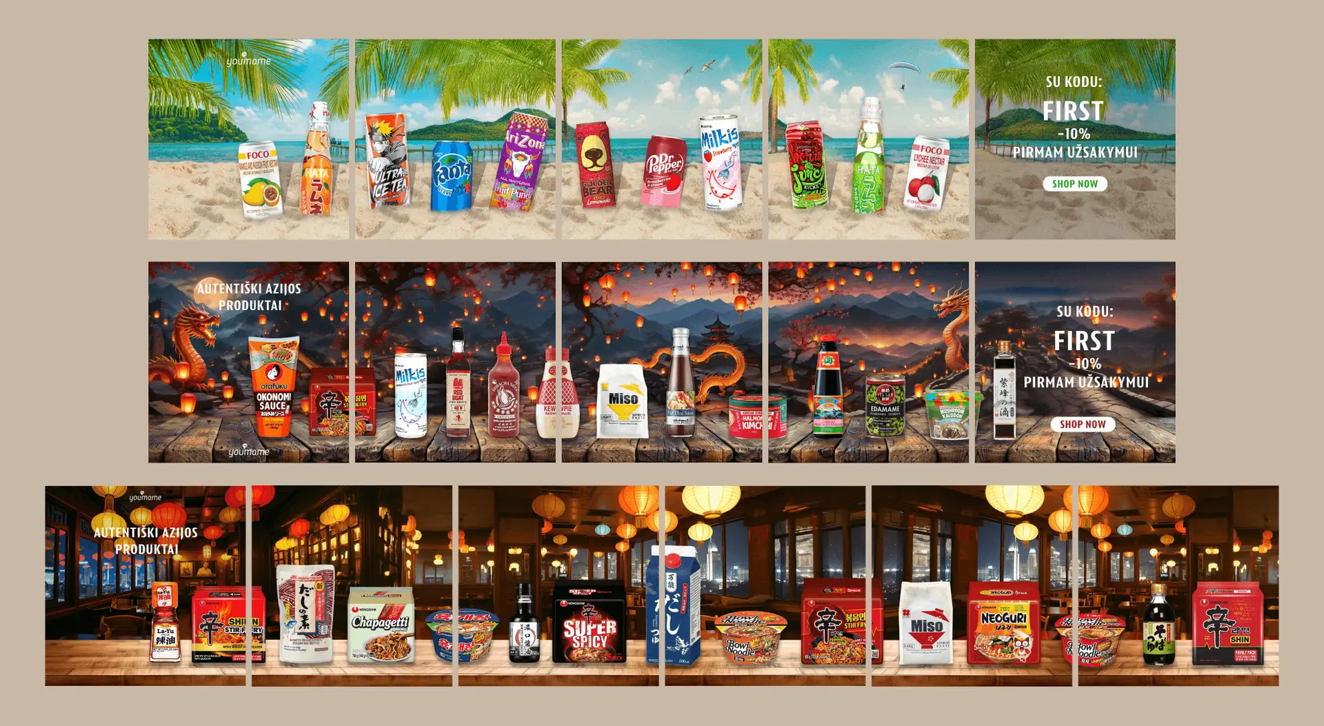 Developed a vibrant and culturally inspired set of creatives for an online shop specializing in Asian and Mexican products. The visuals include bright, eye-catching graphics featuring product images enhanced with AI-generated content to add unique design elements and elevate the overall appeal.
